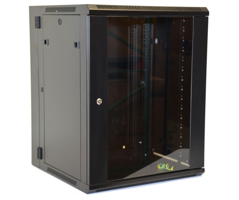 15U Wall Mount Equipment Cabinet, Glazed Door, Double