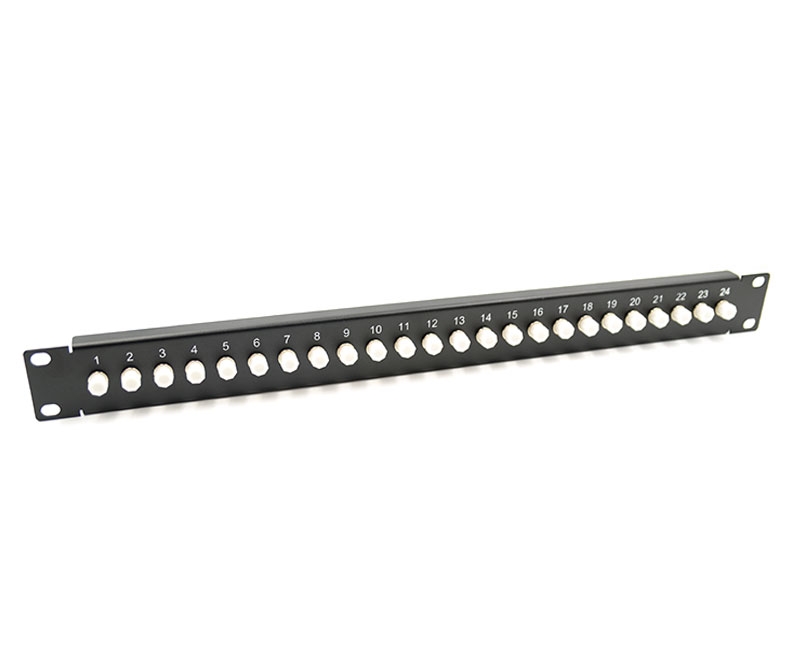 This 24 Port, Rack Mount, Adapter Plate is the size of a 1RU 19" panel, and is loaded with 24 FC Adapters. This face plate meets all applicable standards and can be fitted with any custom array of adapters. Adapters are included.
