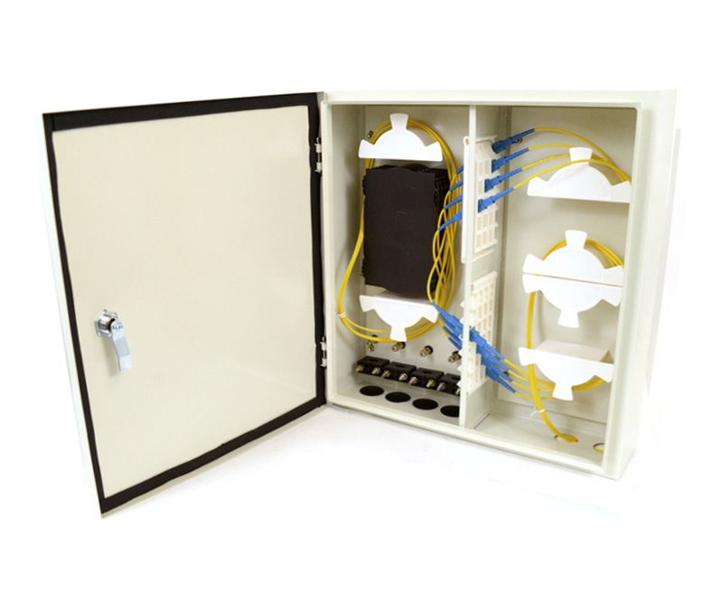 Termination boxes are suitable for jointing fiber with fiber pigtails, protecting fiber optic splices and helping to distribute. The terminal boxes are divided into a wall-mounting type, a fixed (rack-mounting) and flexible (drawing-out, pushing into) type terminal boxes, which mainly are used within telecommunication equipment rooms and network equipment rooms.