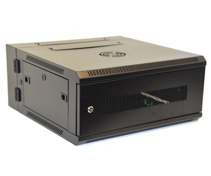 This Wall Mount Enclosure Cabinet is excellent for use with various types of electronic equipment and ideal for use where floor-space is limited, including classrooms, homes, small offices and telecom rooms. It is made of a highly durable, welded frame and has a turning angle on the front door of over 180 degrees. A cooling fan can be installed on the top cover of the cabinet to increase air circulation and increase cooling.