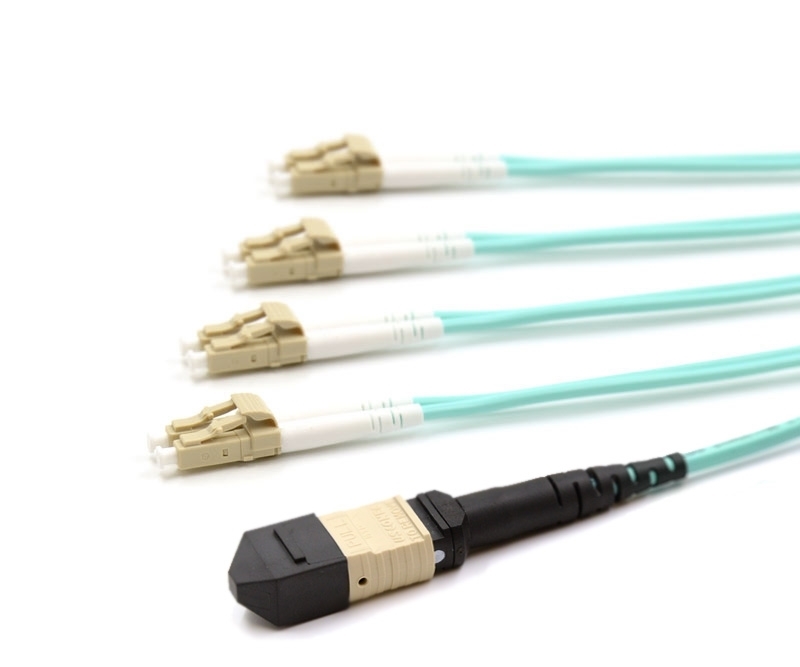 5m, MTP Female to 8 LC UPC, 8 Fiber QSFP Multimode OM3 50/125 Fanout Cable