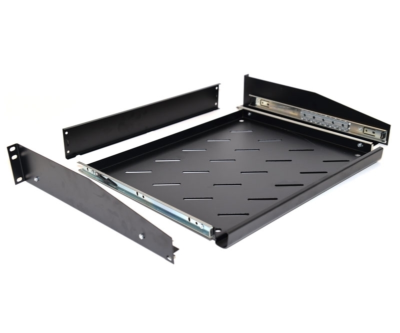 This keyboard shelf, fits into a standard network rack. Allow easy access for a laptop computer or keyboard for network access. Panel fits a standard 19" wide racks The panel is constructed of black painted steel with mounting holes predrilled