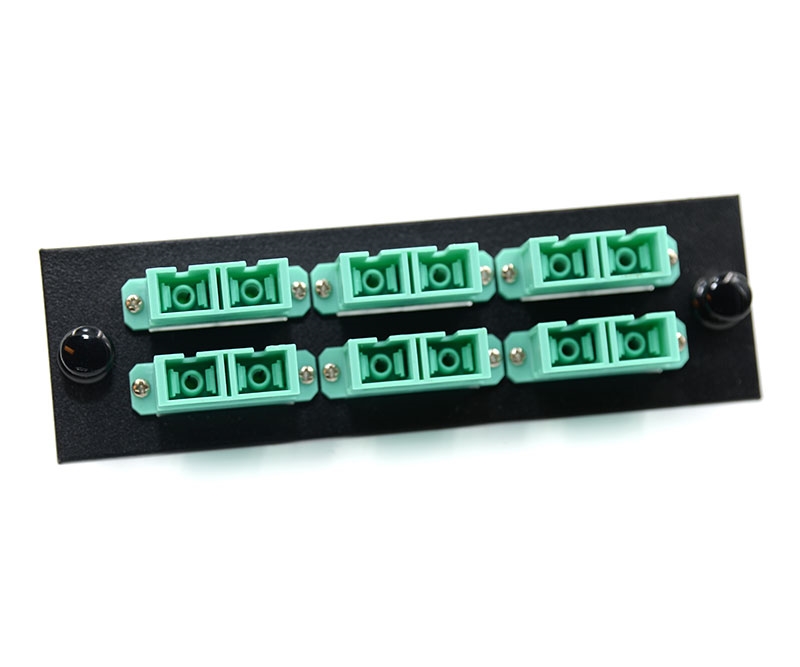 F-Type Plate with 6 Duplex SC Aqua Adapters